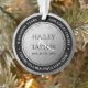Feiern Sie mit diesem stilvollen Ornament das 11. Stahlfest! Elegante Schwarz-Weiß-Schriften auf einem Diamantendeck, abgenutztem Stahlhintergrund verleihen diesem besondere Anlass und Meilenstein eine unvergessliche Touch. Personalisieren Sie mit den Namen des Paares, den Ehedaten und den Glückwunschbotschaften auf den Felsen. Umkehrung zeigt identisches Design. Verwenden Sie, wie es ist, oder ersetzen Sie mit einem Foto des Paares. Dieses Design ist für die Kreisform optimiert. Design © W.H. Sim. Weitere Informationen unter zazzle.com/expressionsoccasions