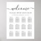 Elegantes Hochzeitsplakat für bis zu 12 Tische mit Begrüßung in einem stilvollen Drehbuch mit Swashes, "Find Your Seat", Ihren Namen und Hochzeitsdatum in eleganter Serif-Typografie und den Tischnummern und Gastnamen in schlichter moderner Typografie. Wählen Sie die Option zum digitalen Download, um Änderungen in letzter Minute zu bearbeiten und lokal auszudrucken.