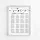 Elegantes Hochzeitsplakat für bis zu 16 Tische mit "Begrüßung" in einem schicken Skript, Ihren Namen und Hochzeitsdatum durch ein Herz verbunden und "Wir sind so froh, dass Sie hier sind" in klassischer Serifentypografie. Sie können die Option zum digitalen Download auswählen, um Änderungen in letzter Minute zu bearbeiten und lokal auszudrucken.