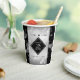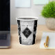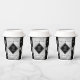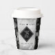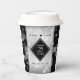 Feiern Sie mit diesen stilvollen Papiertassen das 25. Silberhochzeitjubiläum! Elegante Schwarz-Weiß-Schriften mit sechseckigen Konfetti auf silberfarbenem Hintergrund verleihen diesem besondere Anlass eine unvergessliche Touch und einen außergewöhnlichen Meilenstein. Personalisieren Sie mit den Namen des Paares und den Jahren der Ehe. Umkehrung zeigt identisches Design. Design © W.H. Sim. Weitere Informationen unter zazzle.com/expressionsoccasions
