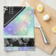 Feiern Sie den 43. opalen Hochzeitstag mit diesem stilvollen Handtuch! Elegante Schwarz-Weiß-Schriftzeichen mit hexagonalen Konfetti auf einem schillernden opalen Hintergrund, umgeben von schwarz-weißen Balken, verleihen diesem besondere Anlass eine unvergessliche Touch und einen außergewöhnlichen Meilenstein. Personalisieren Sie die Namen und Daten der Ehe des Paares. Design © W.H. Sim. Weitere Informationen unter zazzle.com/expressionsoccasions