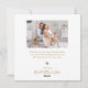 Elegantes, modernes Minimalistisches Weiß und Gold "Frohe Weihnachten" Kalligraphie Script 4 Foto Collage Holiday Card. Diese festliche, skurrile Mimimalistin, vier (4) Foto-Urlaubskarte Vorlage zeigt eine hübsche Foto-Collage und sagt "Frohe Weihnachten"! Der "Frohe Weihnachten"-Grußtext ist in einer schönen Hand geschrieben Wirble Swash-Schwanz-Schriftart-Typ in Gold auf weißem Hintergrund. Auf der Rückseite mit einem Grußtext mit einem kleinen Herzdoodle auf Weiß und einer horizontalen Bildvorlage. Schöne Grußkarte für Ihre Familie und Freunde in der Weihnachtszeit.