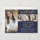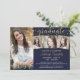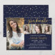 Elegant 4 Foto Graduate Navy Blue Gold Confetti Einladung