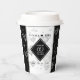 Feiern Sie mit diesen stilvollen Papiertassen das 60. Diamantenjubiläum! Elegante Schwarz-Weiß-Schriften mit stilisierten Diamantenkonfetti auf weißem Hintergrund verleihen diesem besondere Anlass eine unvergessliche Touch und einen außergewöhnlichen Meilenstein. Personalisieren Sie mit den Namen des Paares und den Jahren der Ehe. Umkehrung zeigt identisches Design. Design © W.H. Sim. Weitere Informationen unter zazzle.com/expressionsoccasions