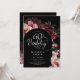 Elegante florale 60. Geburtstagsfeier Einladung. Schönes Design mit botanischen Akzenten. Enthält bordeauxrote und rosafarbene Pfannkuchen, Rose auf dunklem, moody Hintergrund und trendigen Schriftart für Typografie. Sie können gedruckte Einladungen auswählen und/oder eine digitale Vorlage zum sofortigen Download auswählen. Personalisieren Sie Ihre persönlichen Daten. Ideal für eine stilvolle Damenfeier.