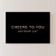 Elegant black 70th birthday party thank you card featuring "Cheers To You And Thank You" showcased in classic serif and simple gold typography. On the back, add your personal message and name, or leave blank for a hand-written note.