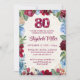 Elegant 80. Geburtstag - Burgund Blumendesign Einladung