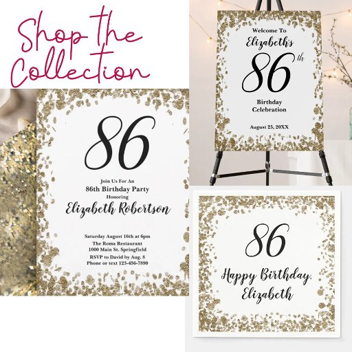 86th Birthday Gold Glitter Glam CelebrationDesignt von Kara Buntin