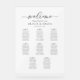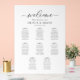 Classic Calligraphy Script Wedding Seating Plan. Welcome sign. Personalized Simple Minimalist Seating Chart for 80 guests (8 tables). Just click the customize further link, shown under the text personalization area on the right, and choose your custom color background. This sign poster template makes it fast and easy to create stunning additions to your wedding decor. Signs can be enlarged, there are many sizes to choose from, as well as options for custom framing and matting.