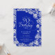 Königlich blauer silber florale 90. Geburtstagsfeier Einladung. Elegantes Design mit Rose, Imitaten silberne Folie und Typografie Script Schriftart. Die trendige Einladungskarte eignet sich perfekt für eine stilvolle Damenfeier. Kann für jedes Alter angepasst werden. Personalisieren Sie Ihre persönlichen Daten. Gedruckte Zazzle-Einladungen oder Sofortdownload digitaler Druckvorlage.