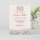 Elegant 90th birthday invitation for her featuring soft pink and purple flowers, a feminine floral number design, and a graceful milestone layout. A beautiful choice for celebrating a ninetieth birthday with a chic, stylish, and coordinated floral party design. Enjoy!