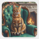 Elegant Abyssinian Cat Regal Holiday Portrait Art Quadratischer Aufkleber