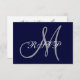 Elegant Affair Navy Blue Gray Initial Wedding RSVP