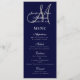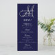 Elegant Affair Navy Blue Script Monogram Wedding Menükarte