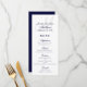 Elegant Affair Navy Blue Script Monogram Wedding Menükarte