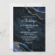 Diese elegante Luxus-Hochzeitseinladung besticht durch einen schicken marineblauen Blau und Gold-Agate-Hintergrund, der weißen Text koordiniert, und ein elegantes Script-Monogramm auf der Rückseite. Für passende Produkte, besuchen Sie bitte die Kollektion, oder schreiben Sie mir durch Zazzle Chat.