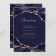 Elegant Agate Navy Rose Gold Wedding Reception Begleitkarte