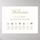 Welcome your guest with this elegant order of events, wedding timeline sign. Design with beautiful golden watercolor timeline images and delicate hand written calligraphy details. Clean and simple design full of elegance and grace. Ability to easily add on template your own times and text below images. If needed, you can edit this design using Zazzle's design tool and re-arrange the images to suit your own timeline needs. "IMPORTANT NOTE: This sign is in premium poster paper style, easy to frame or glue/staple to inexpensive MDF or foam board for display. If your prefer this sign prepared for display already in a foam board, please follow this easy steps: on this sign product page, scroll up, until you see a section with images called "Transfer design to a product". Use the arrow on the images to look at all the options, until you reach the "Foam Boards" option. Click on it, and it will transfer the design into a foam board for you. Initially sometimes it transfers the design into a very big foam board size, nevertheless you can change the sign into the size you need right there on the product page and even see how it looks already in a stand. When you add this design into your shopping cart, it will tell you the back side is in blank. Don't worry about it, as this only means that the back of the sign will be white.