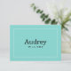 Personalisierte Mitteilungskarten im Flachstil zeichnen sich durch ein elegantes und raffiniertes Design und ein individuelles Monogramm des Brautennamens aus, wobei auf der Rückseite Platz für eine handgeschriebene Nachricht vorhanden ist. Aqua / Rotwein's Eiklar, Schwarz und Weiß Farbschema.