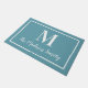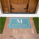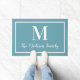 Schalten Sie Ihren Zuhause mit dieser eleganten, maßgeschneiderten Monogramm-Doormat in Aqua / aquamarin Blau und Weiß. Hinweis: Die Farben können geändert werden. Personalisieren Sie mit dem Nachnamen Ihrer Familie im Skript und einem Serifenstil Monogramm Initial. Das Design umfasst einen gerahmten Rahmen.