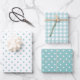 Elegant Aqua Blue Polka Dots Gingham Pattern Mix Geschenkpapier Set