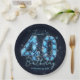Whether you are hosting a "40 & Fabulous" brunch, a blue-themed cocktail party, or celebrating a March birthday, these plates add a high-end touch to your dessert or dinner table without the high-end cleanup. Set against a moody navy blue background with ethereal bokeh lights and silver sparkles, the vibrant blue jewels truly pop.