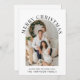 Moderne Weihnachtskarte mit Ihrem Foto in einem Bogen-Rahmen und "Frohe Weihnachten" in eleganter Typografie und Ihrem Namen und einem saisonalen Gruß in einfacher Typografie.