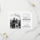 Elegant Black and White wedding Save the Date Card featuring simple arch photo design with wedding calendar and hand written names of the groom and bride to be. Little peony flower heart to select day in the calendar (also red heart outline in edit can be activated instead, should you choose so). Wedding location and short announcement about formal invitations at the end of the card. Stylish way to let your friends and family to know to save the date of your special day.