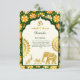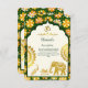 This elegant Hindu wedding enclosure card features a rich emerald green background with a marigold floral pattern and an ivory moghul arch. Intricate gold details of lotus, peacock, elephant, and an Om symbol frame your personalized details, perfect for sharing additional wedding information with your guests in a luxurious and traditional design.
