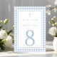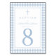 Elegant Baby Blue Gingham Boy Baptism Table Number.