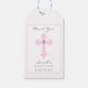 Personalisieren Sie dieses elegante Taufen/Taufen Tag für ein kleines Mädchen. Pastellrosa Kreuz mit Imitaten Diamant in der Mitte. Fügen Sie Ihren Text hinzu oder löschen Sie ihn.
