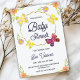Elegant baby shower invitation featuring floral design with orange and yellow flowers. Details include event for Sue Yaneer, on January 15th in Anchorage.