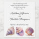 Ein elegantes Hochzeitsdesign mit Aquarellmuscheln und Perlen auf weißem, sauberem Hintergrund. Elegante Drehbücher und klassische Serif-Schriftart schaffen ein zeitloses Aussehen, perfekt für Hochzeiten an der Küste, am Ziel oder im nautischen Bereich. Die sanften Pastelltöne erinnern an eine romantische und ruhige Ozeanatmosphäre.