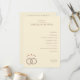 This elegant wedding program features a minimalist design with a soft beige background and classic serif typography, creating a warm and formal atmosphere. The layout is centered and balanced, showcasing the ceremony's events in a clear, organized manner. An illustration of interlocking rings adorned with intricate patterns adds a touch of sophistication, while small hearts connected by dotted lines provide subtle decorative detail. Perfect for couples seeking a traditional yet refined look, this program captures the essence of celebration and unity on their special day.