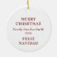 Keramik Circle Ornament - Personalisiertes zweisprachiges Weihnachtsdesign Mit diesem eleganten Keramik Circle Ornament eine personalisierte Touch zu Ihrem Weihnachtsbaum hinzufügen! Mit dem zweisprachigen Gruß "Fröhliche Weihnachten - Feliz Navidad" hinten in kräftigen burgundischen Tönen, ist dieses Ornament mit Ihrem Familiennamen für einen einzigartigen Urlaubsgenuss anpassbar. Das moderne und niedliche Vogel- und Blumendesign verleiht Ihrem Baum einen gemütlichen und festlichen Charme. Es ist der perfekte Weg, um im Stil zu feiern oder als nachdenklicher Feiertag ein Geschenk zu machen. Schaffen Sie noch heute Ihren personalisierten Schmuck und machen Sie Ihr Weihnachtsfest unvergesslich!