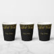 Eleganter Geburtstag festliche goldene Konfetti auf schwarzen Papier Cups. Text kann personalisiert sein.