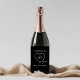 Stylish black and white bottle labels for a 50th wedding anniversary. The design includes a white wreath, the number 50, and names in elegant script calligraphy. Click personalize to add your details or use the design tool for further customization. Complementary items are also available.