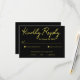 Add a touch of sophistication to your wedding stationery with this elegant black and gold script RSVP card. Featuring luxurious gold calligraphy and a sleek black background, this design is perfect for modern, formal, or black-tie weddings. Guests can easily reply with their attendance and meal preferences, making it both stylish and practical. Customize the text to match your special day and impress your invitees with timeless elegance.