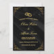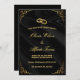 Featuring a rich satin black background with golden flourishes and wedding rings, this invitation radiates sophistication and romance.