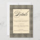 This elegant black and ivory wedding details card is the perfect way to share important information with your guests. The classic black background is accented with a sophisticated monogram and decorative script font, creating a timeless feel. This card provides space for reception details, accommodation information, and a link to your wedding website, ensuring your guests have all the necessary information for your special day. Impress your guests with this chic and informative addition to your wedding stationery suite.