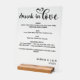 Elevate your wedding bar setup with this Elegant “Drunk in Love” Black and White Bar Sign. Featuring minimalist typography and a clean layout, this sign beautifully lists your drink menu—from spirits and wines to signature cocktails. Perfect for modern, romantic weddings, it adds a sophisticated touch to your bar or reception area. Personalize with your names or custom drink selections for a timeless design that complements any décor theme.