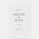 Elegant Black and White Wedding Welcome Sign. The White Space Edit Collection. Welcome your guests in timeless style with this minimalist design for modern couples who love clean lines and effortless sophistication on a classy acrylic. This simple yet elegant layout suits any wedding theme or colour palette. Fully customisable. Update your names, date, and venue details easily. Simple black and white palette for a classic feel, wth lots of white space.