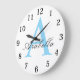 Elegant Black Blue Personalized Monogram Name Große Wanduhr