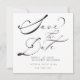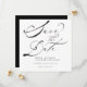 Eleganter und eleganter Platz Hochzeit Speichern Sie das Datum mit handgeschriebenem Typografie-Script, weißem Hintergrund und schwarzem Backer. Passen Sie es mit Ihren eigenen Hochzeitsinformationen an. Eine zeitgenössische und dennoch klassische Hochzeitsankündigung für moderne Paare.