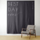 This elegant wedding backdrop features a minimalist design with the phrase "BEST DAY ever" in bold, modern typography. The layout combines strong sans-serif lettering with a flowing cursive script, creating a balance of formality and personal sentiment. Set against a deep charcoal background, the monochromatic color palette enhances the sophisticated and celebratory mood, making it perfect for capturing special moments on your big day.