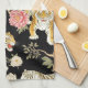 Elegant Black Chinoiserie Tiger and Peony Pattern Geschirrtuch