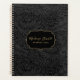 Elegant vintage black floral botanical pattern planner with a custom name in gold stylish script typography and "PLANNER" and custom year in gold modern san serif font.