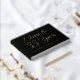 Black guestbook with the text "Cheers to 55 Years" on the cover. Customize the age, name and date on the front cover and also the text on the spine. This lovely guestbook will be a nice touch to display on an elegant birthday party entrance table!