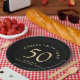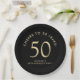Elevate his 50th birthday party with these elegant black paper plates featuring "Cheers to 50 Years" and his name showcased in sleek gold lettering,