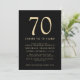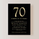Celebrate a milestone in sophisticated style with this "Cheers to 70 Years" 70th birthday invitation featuring elegant gold typography on a minimalist black background, creating a timeless design perfect for honoring seventy years. Personalize with your event details — name, date, venue, RSVP information, and attire note — to make it uniquely yours.